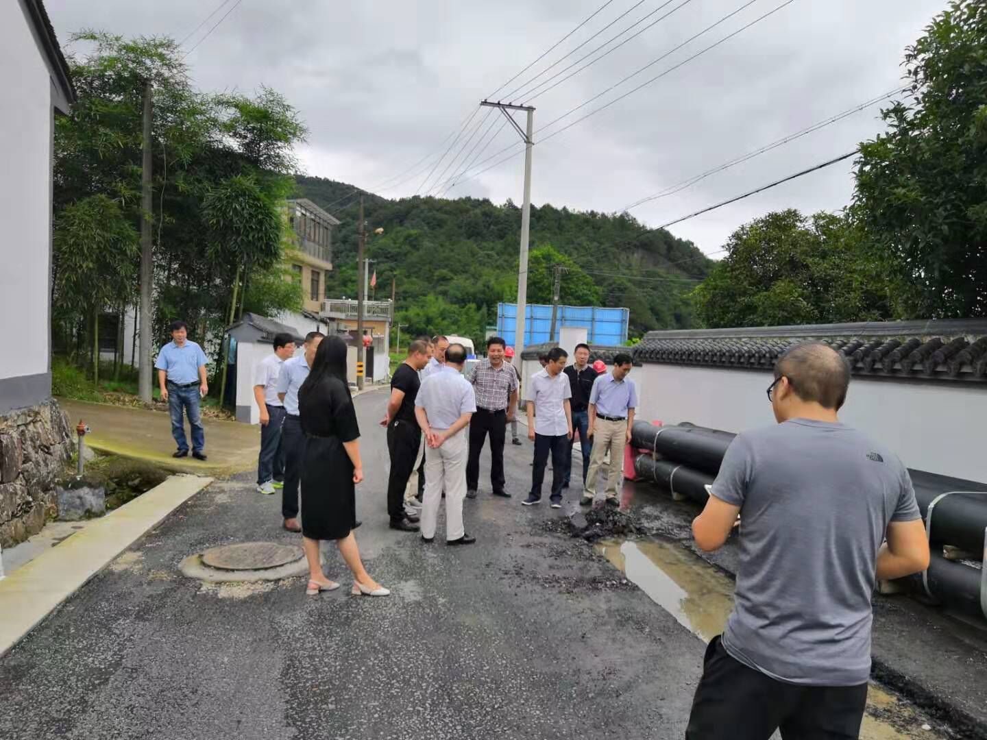 7月16日上午,區(qū)人大常委會副主任劉斌一行到王壇鎮(zhèn)孫岙村、平水鎮(zhèn)岔路口村實地督查柯橋農村飲用水達標提標加壓延伸工程施工現(xiàn)場。集團副總經(jīng)理胡曉峰、公司總經(jīng)理楊建東、副總經(jīng)理曹志潮等陪同。