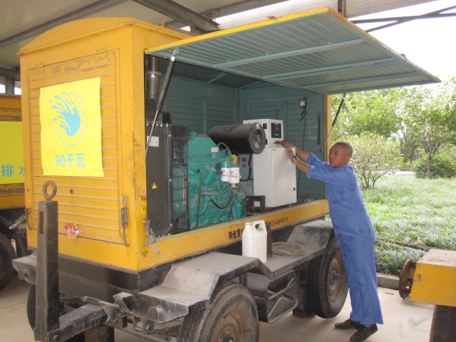 圖為工作人員在檢查發電機