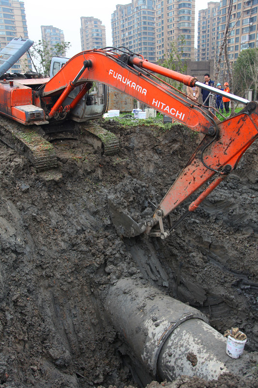 排水公司在管線巡檢人員發現漏點后,立即啟動應急搶修預案,立即停止對該管線的運行,并將管道污水調度至其他管道排放,確保企業、用戶正常排水。與此同時,大型機械設備和搶修物資、人員第一時間到達搶修現場,僅用了8個半小時便成功修復管道。由于整個搶修過程反應、行動迅速,有效避免了一起重大的環境污染事故發生。