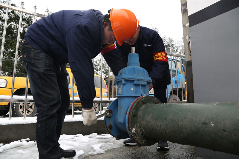 低溫雨雪冰凍天氣來襲前,水務集團未雨綢繆、及早謀劃、多措并舉,全力以赴應對“冰點”。2017 年年初,我們通過“舊管改造、明管保暖、水表加套、地表覆沙” 等方式, 對各類供水設施進行了防凍保暖。2018 1 月,我們又組織黨員干部、志愿者開展“百人巡管查隱患”活動,通過立管保暖、墻表加套、地表填沙、薄膜覆蓋等方式,分批、分時、分段對1.5 萬余只地